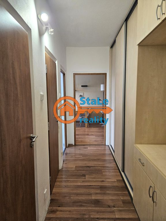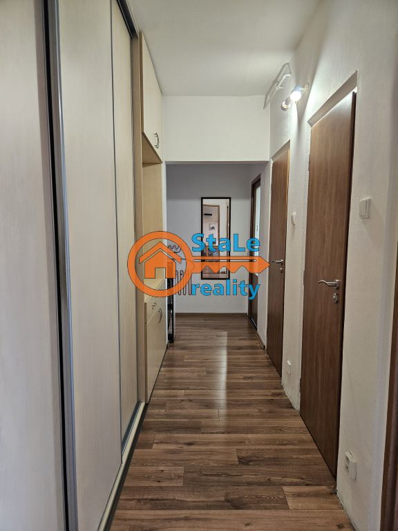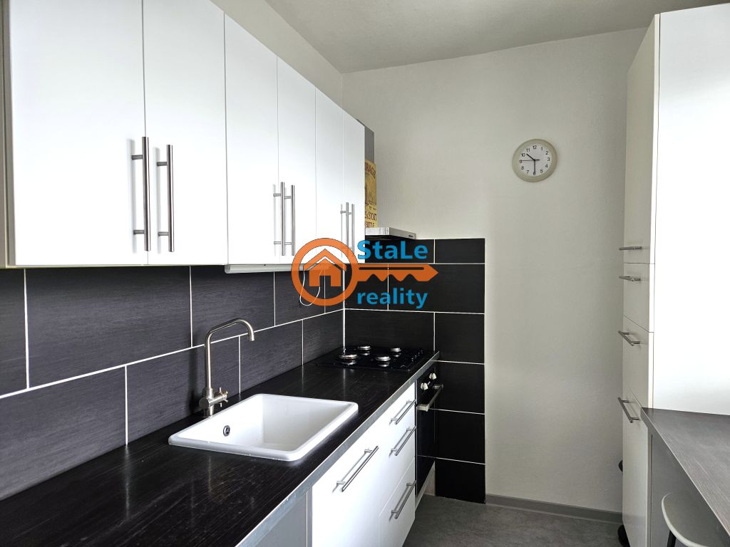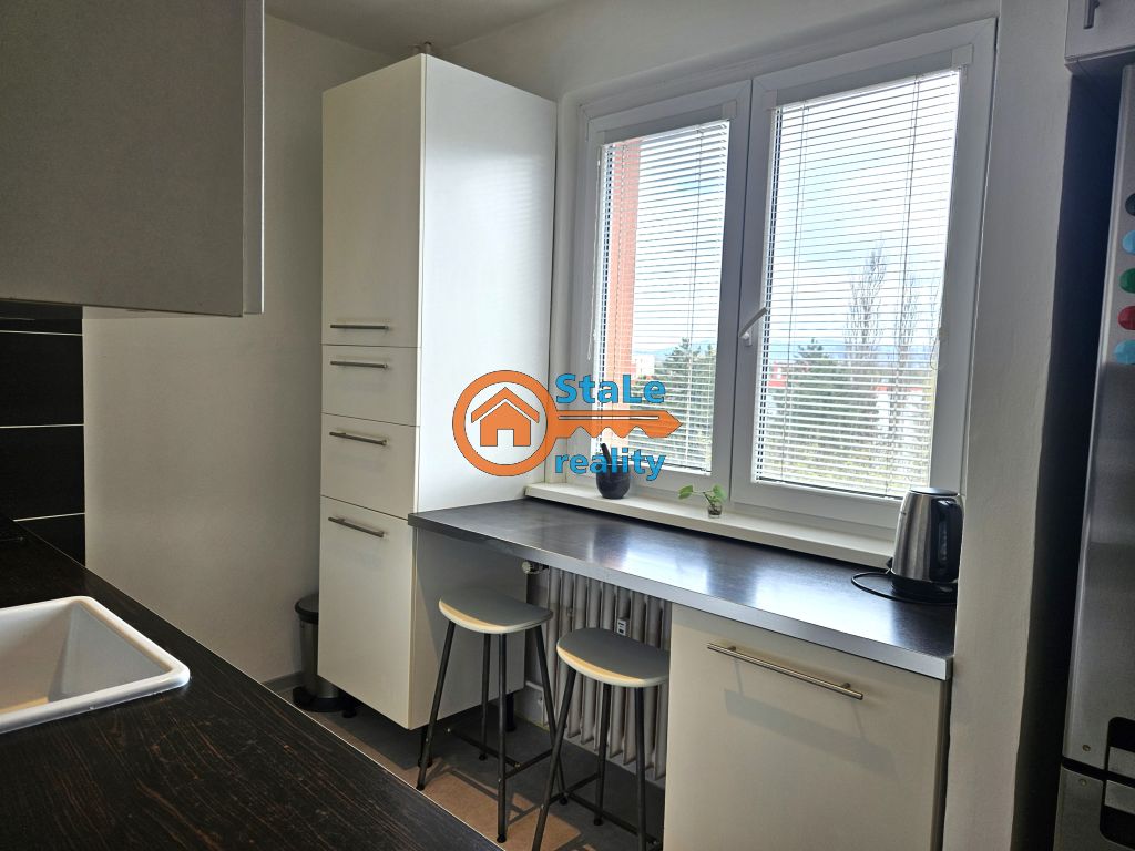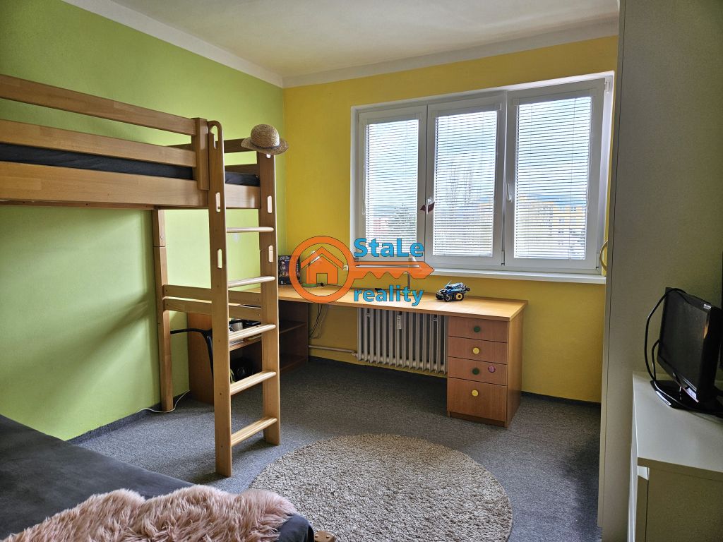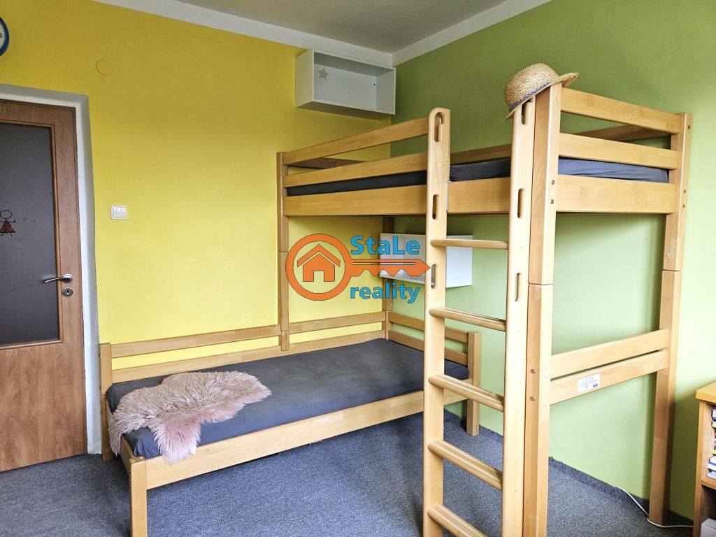 Nabízíme exkluzivně k pronájmu družstevní byt 3+1 s lodžií (4 m2), který se nachází v 6. NP osmipodlažního panelového domu v klidné lokalitě města a to na ulici Družební v Kopřivnici. Byt je po částečné rekonstrukci. Pronajímá se s vybavením – viz foto. Jeho podlahová plocha je 64 m2 a užitná 70 m2. V kuchyni se nachází nová kuchyňská linka s kombinovaným sporákem a přípojkou pro pračku, původní spíž je nahrazena novou, ve stejném designu jako kuchyň. Součástí pronájmu je také lednice s mrazákem. Pod oknem je vytvořeno posezení pro 2 osoby. Z obývacího pokoje je vstup francouzským oknem na lodžii, z které je krásný výhled. Velké uložné prostory zajišťují vestavěné skříně až do stropu zhotovené na míru, které se nachází v chodbě. V koupelně se nachází vana, umývadlo s koupelnovou skříňkou a zrcadlo, WC je samostatné. Ložnice je dostupní z obývacího pokoje, dětský pokoj má vstup s chodby, je neprůchozí. Do bytu je doveden internet a kabelová televize. Patří k němu sklep a podíl na společných prostorách domu. Parkování je možné v bezprostřední blízkosti domu. Jedná se o výbornou lokalitu s dostupností všech služeb a občanskou vybaveností. Preferujeme pracující zájemce, nekuřáky, bez domácích mazlíčků.